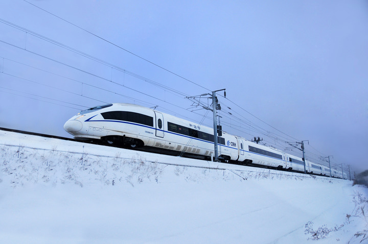 2012年,时速350公里高寒动车组CRH380BG型动车组上线。